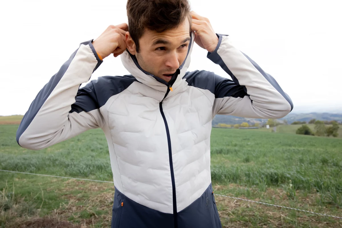 Et en guise de 3e couche, nous avions la veste Zeroweight Insulator, composés à 91 % de fibres recyclées et d’une isolation en polyester Freudenberg (fabriquée à partir de bouteilles en plastique recyclées), un apport de chaleur exceptionnel et le compromis idéal entre protection contre le froid, respirabilité et liberté de mouvement. Pensez également aux gants (imperméables de préférence, pour ne pas tremper vos doigts si, au ravitaillement, vous vous renversez du liquide en faisant le plein des flasques), au bonnet et au protège-cou, pour lutter contre le froid et l’humidité.