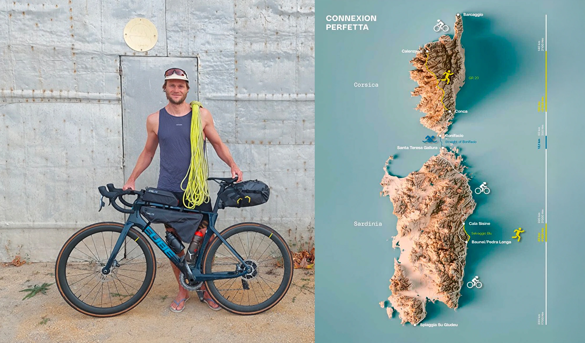 « Pour la beauté de la ligne »… il ne faut pas chercher plus loin pour comprendre ce qui a conduit le guide suisse Tim Marklowski à relier en septembre la Corse et la Sardaigne à la seule force de ses jambes, de ses bras et de sa volonté. En 16 jours, il a enchaîné le GR20, traversé à la nage le détroit de Bonifacio et bouclé le Selvaggio Blu — deux des treks les plus exigeants d’Europe — by fair means. Une première. Forcément aussi un record, mais là n’est pas la question pour lui. « Ce n’était pas une course contre la montre, mais un voyage continu, fluide, entre la mer et la montagne », explique ce puriste, démontrant ici une cohérence rare. Pas de post sur les réseaux : Tim Marklowski les fuit comme la peste. Du coup, peu d’échos de son dernier exploit. Seulement deux articles dans la presse étrangère, PlanetMountain et Bergsteigen.com, plutôt factuels. Le guide de haute montagne IFMGA basé à Berne, géographe de formation scientifique et également journaliste à ses heures, aurait pourtant de quoi raconter. En septembre, il a signé une première : la combinaison du GR20 corse et du Selvaggio Blu sarde, reliés uniquement par des moyens non motorisés. « J’ai toujours été attiré par les projets à la fois beaux et logiques » Le concept : partir du nord de la Corse, rejoindre le départ du GR20, Calenzana, à vélo, parcourir le sentier en autonomie, descendre jusqu’à Bonifacio, traverser à la nage le détroit de Bonifacio. Puis, arrivé en Sardaigne, remonter en selle jusqu’à Pedra Longa avant d’enchaîner le Selvaggio Blu, sentier très technique, pratiquement pas balisé, moins connu que le corse, mais tout aussi exigeant, voire plus encore. Pour résumer, un triathlon géant de montagne et de mer — 900 km pour 25 000 m de dénivelé positif — sans assistance motorisée, que le Suisse a bouclé entre le…