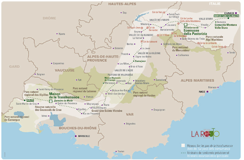 Rares sont les randonneurs qui l’ont déjà emprunté : le GR 69, aussi connu sous le nom de La Routo, est ouvert depuis le printemps 2018 seulement. Ce chemin de grande randonnée est un projet ambitieux de plus de 500 km reliant la plaine de La Crau (Bouches du Rhône) à la vallée de la Stura (Italie). Créé sur l’itinéraire de la Grande transhumance, il est le fruit de plus de dix années d’échange entre la Maison de la transhumance et l’Ecomuseo della pastorizia de Pontebernardo. L’idée de cet itinéraire est de mettre en valeur un territoire, mais aussi un patrimoine culturel, celui du pastoralisme qui forge l’identité de cette région.