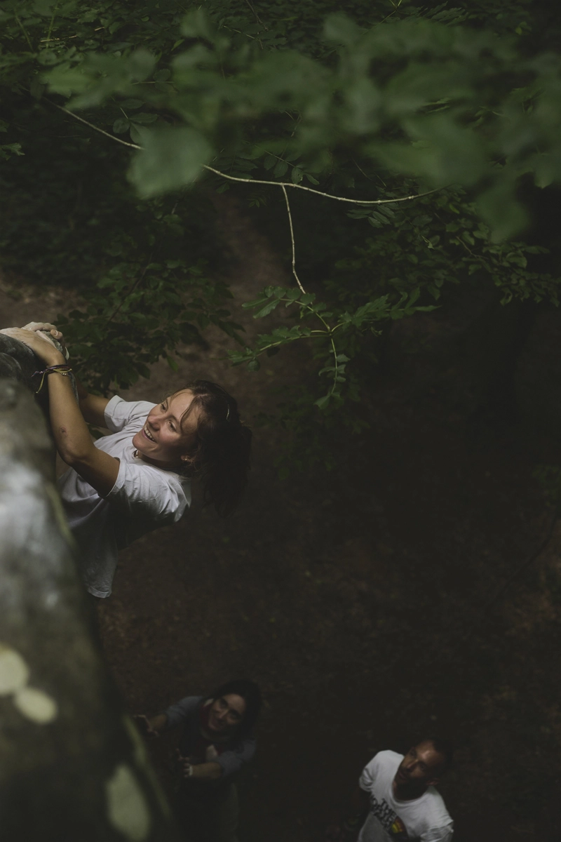 C’est précisément ce que « Grimpeuses » entend poursuivre. Alors bien sûr, au cours de ces deux jours de découverte ou de perfectionnement les grimpeuses ont eu la chance de grimper sous l’œil bienveillant des coaches en salle, mais aussi, le lendemain à Fontainebleau, mais on a pu les voir aussi assister à des conférences ou participer à des débats sur « La place de l’ego dans l’escalade : comment travailler avec la compétitivité d’une façon plus saine », « La place de la femme dans l’univers de l’escalade » ou sur une « pratique responsable de la grimpe ».