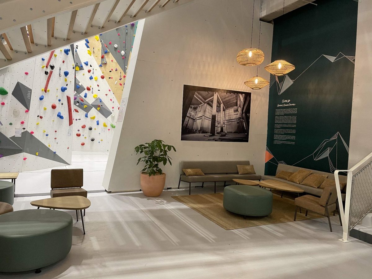 Au-delà de sa surface, cette salle se distingue par son élargissement au statut de « lieu de vie », non cantonné à la seule pratique de l’escalade. « Depuis deux ou trois ans, je ressens que les gens cherchent un lieu de convivialité plus large dans les salles de grimpe », explique François Petit. Le Covid-19 a accéléré les choses, surtout pour les Parisiens qui ont de plus petites habitations. Déjà, nos salles ouvertes à Caen, à Mérignac ou encore à Angers comprennent des espaces de vie. Mais, ici à Paris, ce sont 800 m2 qui y sont dédiés. »