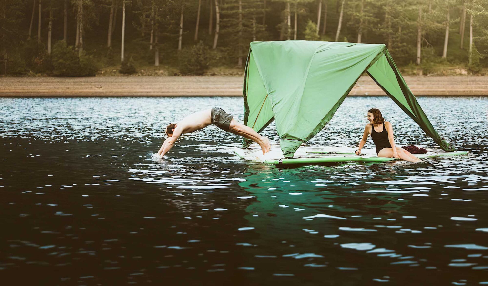 On connaissait déjà la marque anglaise Tentsile pour ses tentes à suspendre, elle vient d’innover encore en lançant un modèle familial qui peut aussi voguer sur l’eau. Pour son 6e anniversaire, la jeune marque Tentsile a voulu se faire plaisir et lancer un produit à nul autre pareil. Une tente à poser au sol, jusque-là, rien d’étonnant. Adaptable également dans les airs – une technique dont elle a fait sa marque de fabrique et qu’elle décline en divers modèles équipés d’une moustiquaire doublée d’un toit imperméable; parfait pour les sols en pente et caillouteux. Et surtout utilisable sur une rivière ou un lac, une fois transformée en radeau. Ce modèle, baptisé Tentsile Universe, est assez grand pour abriter un couple ou une famille, le temps d’un week-end en forêt ou au bord d’un lac. Ne rêvez pas toutefois de naviguer ni de passer une nuit entière sur l’eau, l’idée est plutôt d’alterner bivouac et farniente. Cette « trois terrains » de 9,5 m2 est assez spacieuse pour accueillir cinq personnes au sol et trois en lévitation, pour un poids maximum de 400 kg. Dotée d’un sol rigide, elle pèse quand même 50 kg. Mais affiche, une fois pliée, des dimensions raisonnables : 120 x 70 x 40 cm. Vous pourrez donc la caser dans un coffre de voiture. Le constructeur affirme qu’elle se monte en 30 mn, assistée d’une pompe connectable à votre auto. Commercialisée en France uniquement via le site, la Universe coûte la modeste somme de 2000 euros, port compris. Pas donné, mais tentant!