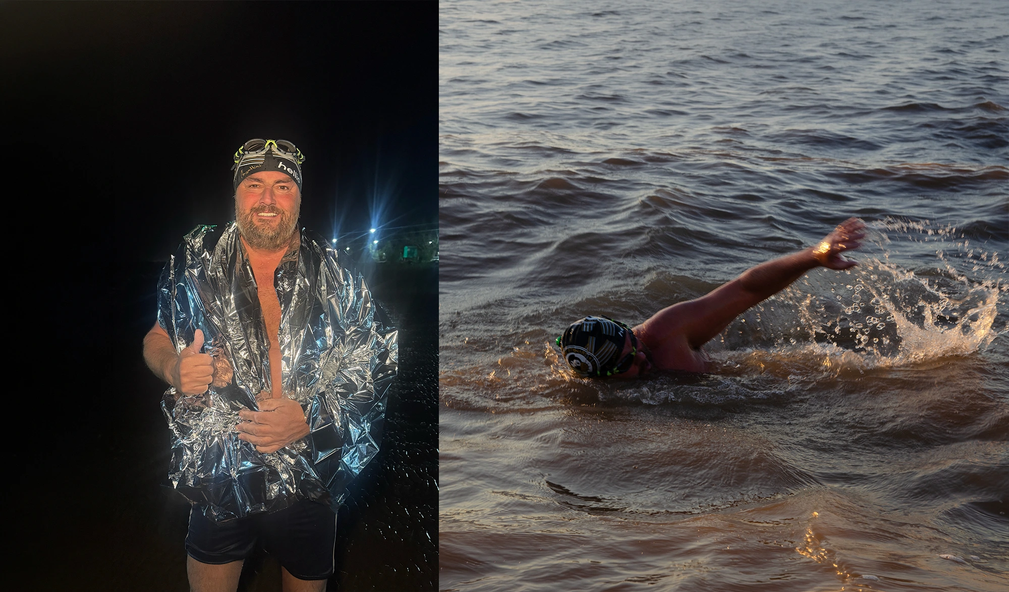 Avec le Río de la Plata, la difficulté était toute autre. Sur cette troisième et dernière étape, ce n’était plus tant le froid qui dominait – l’eau était à 23 °C – que la durée, la fatigue et l’exposition constante aux courants. Car la traversée de l’estuaire du Río de la Plata a été rendue particulièrement complexe par des eaux saumâtres et une visibilité quasi nulle. « C’est terrible… J’avais l’impression de nager dans le noir en permanence. Même les yeux ouverts, on ne voit rien. C’est assez perturbant. » Une sensation d’autant plus marquée que Stève manquait de repères, n’ayant pu s’entraîner qu’une trentaine de minutes la veille.