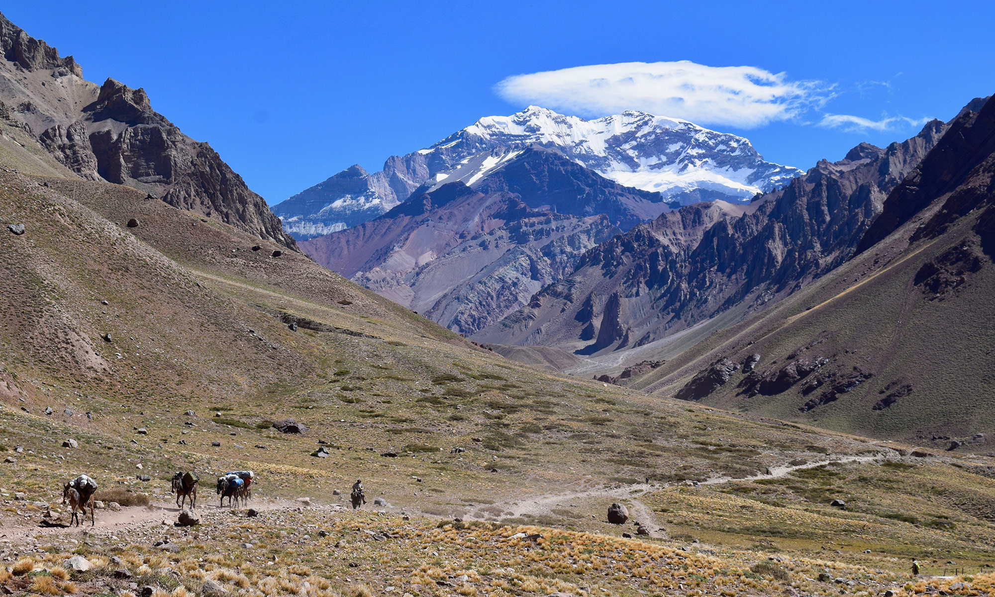 Plus haut sommet d’Amérique du Sud, cette montagne doit aussi sa popularité à son appartenance aux “7 summits”, les sept plus hauts sommets de chaque continent – Everest, Aconcagua, Denali, Kilimandjaro, Elbrouz, Mont Vinson et Mont Kosciuszko. Gravi pour la première fois en 1897, par la face nord, par l’alpiniste suisse Matthias Zurbriggen, l’Aconcagua est devenu un lieu apprécié des sportifs en quête de performance. La voie normale étant relativement “facile” – il n’y a généralement pas de neige jusqu’au sommet en été et le chemin est balisé quasiment de bout en bout – cette montagne se prête bien à des records de vitesse où la technique n’est pas un facteur trop limitant.