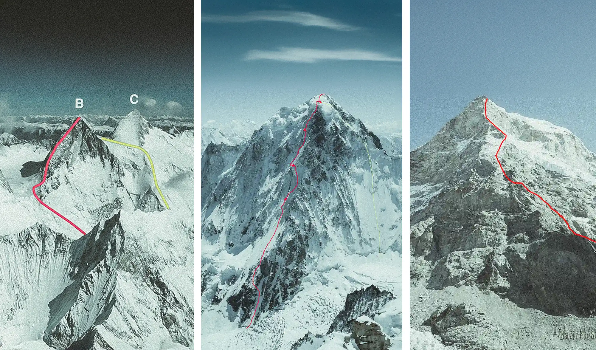 Livingstone et Česen — déjà lauréats d’un Piolet d’Or en 2019 — reviennent à l’été 2024. Ils effectuent trois ascensions d’acclimatation, dont une nuit à 7 000 m.