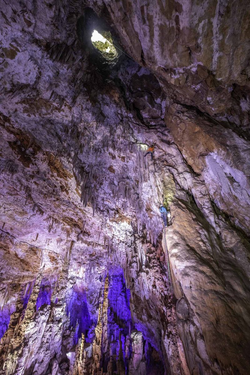 Au cœur de la Garrigue, à seulement 26 km de chez nous, cela semblait presque trop beau pour être vrai, et lorsque @philb_photo nous a envoyé des images de l’intérieur de La Grotte de la Salamandre, nous savions que nous devions aller y jeter un coup d’œil ! La Grotte de la Salamandre est une « grotte témoin », ouverte au public, ce qui signifie que n’importe qui peut se présenter et payer pour faire une visite guidée de ce qui doit certainement être l’une des grottes les plus impressionnantes du Sud de la France. Ce qui rendait la grotte encore plus tentante pour nous, c’est qu’il y a un véritable Aven, une cheminée naturelle menant à un petit trou dans le toit que nous espérions pouvoir escalader et quitter.