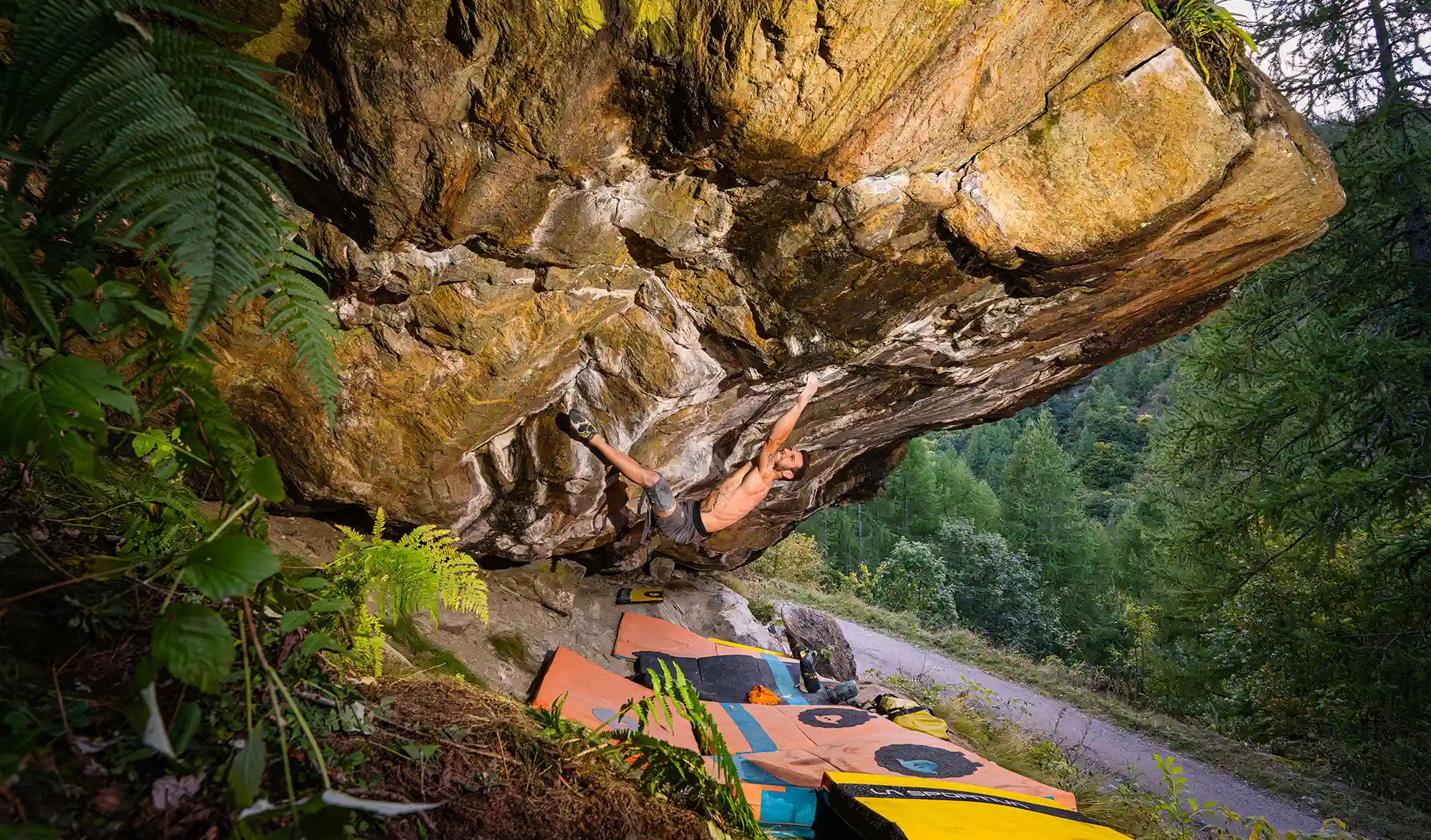 Dans le petit monde du bouldering, certains blocs deviennent des quêtes personnelles, des obsessions qui dépassent la simple cotation. Exodia, près du Refuge Barbara dans le Val Pellice, dans le Piémont italien, en est un exemple frappant. Elias Iagnemma n’a pas seulement achevé ce projet le 10 novembre 2025 : il l’a forgé dans sa tête et dans son corps, essayant et réessayant pendant plus de quatre ans avant de réussir, nous raconte-t-il. Résultat : Exodia pourrait bien être le premier 9A+ bloc au monde. Au-delà de la performance pure, ce qui marque ici, c’est le colossal investissement mental et physique. Quand Elias Iagnemma s’attaque, en juin 2021, à la ligne Exodia, il y repère tout de suite bien plus qu’un défi technique : un terrain d’expérimentation de ses limites. « Quand j’ai vu la ligne pour la première fois, en 2021, je grimpais déjà du 8C bloc mais ma première impression, c’est que c’était impossible ». Dès lors, Exodia devient pour lui non pas un problème à résoudre mais « un bloc qui serait la plus grande réussite ou le plus grand échec de [sa] vie ». Il se lance alors dans un voyage de plus de 4 ans et 200 tentatives, voyage pendant lequel il a le temps de mesurer ses progrès, sa persévérance malgré les échecs, ses doutes, ses envies d’abandon mais toujours, à la fin, sa volonté d’y revenir. Avec ce genre de bloc, il n’y a pas de demi-mesure. L’engagement physique et mental est total, et la paroi devient une obsession. Au fil des mois, puis des années, le rapport d’Elias au bloc change. Non seulement la lassitude physique s’installe, mais une véritable fébrilité mentale apparaît. « Exodia est un bloc étrange : certains jours je faisais des essais incroyables, et d’autres, sans aucune raison, je n’arrivais plus à tenir les talons ou les prises m’échappaient », raconte l’Italien. Cette imprévisibilité lui pèse, érode sa confiance. Elias avoue…