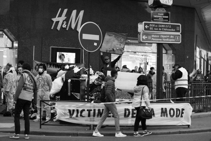 Une prise de conscience de la fragilité des écosystèmes s’opère à grande vitesse chez les consommateurs, mieux informés de l’urgence climatique et des niveaux de pollutions. Certains activistes passent par des actions spectaculaires pour faire bouger les comportements : le 12 avril dernier, le collectif Extinction Rebellion, né au Royaume-Uni en 2018, bloquait les portes d’une grande enseigne parisienne en y répandant des tonnes de vêtements et de plastique. Le but ? Dénoncer la toxicité des modes de production des marques de fast fashion qui poussent à la surconsommation, au mépris des conséquences sur l’humain, la faune et l’environnement.