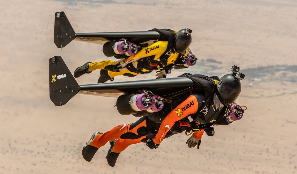Vince : Quand on va à Dubaï, c’est pour voler en « Jetman » – des ailes rigides avec quatre mini-réacteurs. Le projet appartient à Dubaï. On passe six mois répartis dans l’année à s’entraîner sur ces vols. Le but c’est d’être autonomes en Jetman. L’année dernière on a réussi à décoller du sol, sans utiliser l’hélicoptère. On y repart pour continuer l’évolution de ce vol. Pendant vingt ans on a poussé notre sport dans toutes les disciplines. Là, en Jetman, ça nous permet de faire des vols en formation, mais de plus de 10 minutes, de mixer tout ce qu’on a appris ces vingt dernières années avec cette machine. C’est complètement hallucinant, le potentiel est énorme, il y a tout à faire. Autant on a fait beaucoup de choses en BASE-jump et wingsuit, là pour le coup tout est nouveau à chaque fois. C’est trippant ! Et toutes nos disciplines sont complémentaires.