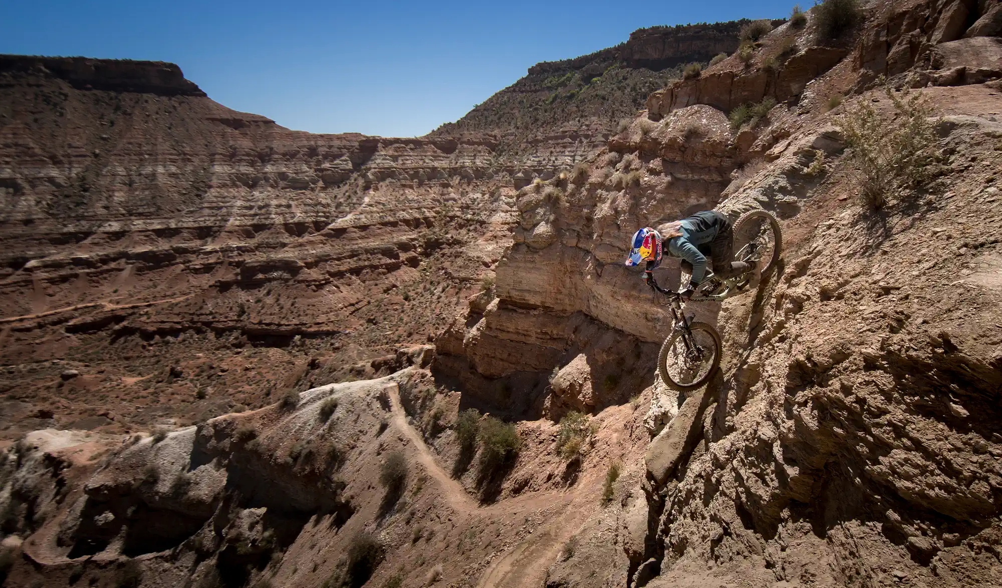 Dans l’univers chargé en testostérone du VTT freeride, l’Américaine Hannah Bergemann ne passe pas inaperçue. Et ce n’est qu’un début. À 28 ans, l’ex-skieuse freestyle s’apprête à plonger dans le désert de l’Utah pour le Red Bull Rampage 2025. Un décor spectaculaire. Et surtout l’épreuve ultime pour cette compétitrice qu’on attend au tournant sur cette deuxième édition ouverte aux femmes. La première pour elle. Blessée l’an dernier, elle revient plus forte, guidée par une même obsession : progresser, toujours, et entraîner les autres rideuses dans sa trace. « Pourquoi je ne peux pas faire du VTT comme toi ? » Mille fois Hannah Bergemann a posé la question à son père, Tim. « Je le voyais partir rouler avec ses potes, et je me disais : pourquoi pas moi ? », raconte Hannah Bergemann. Il avait pour habitude d’échapper au quotidien en allant rouler, mais entre hommes. « Il me disait toujours non. Alors j’ai insisté, encore et encore. Et plus il résistait, plus j’avais envie d’y aller. » Elle l’a eu à l’usure. Première manifestation d’une détermination dont elle va vite faire sa signature. Un vieux vélo, quelques sorties ensemble dans l’Oregon, sa région… elle se prend immédiatement au jeu. Très vite, elle aligne ses premières courses d’enduro aux côtés de son père. « Il a complètement changé d’avis, raconte-t-elle. Après, c’est lui qui se vantait que j’étais la seule fille sur la ligne de départ. » « Apprendre un nouveau trick, ressentir la progression » Avant d’attraper le virus du VTT, Hannah était déjà une athlète accomplie sur neige. À Mount Hood, dans l’Oregon, où elle grandit, elle pratique le ski freestyle en slopestyle, rails et halfpipe. « Ce que j’aimais, c’était le processus : apprendre un nouveau trick, ressentir la progression », explique-t-elle à Red Bull, aujourd’hui son sponsor.« Ce sont deux sports où tu apprends surtout à apprendre », précisait-elle à RadicalrootsMTB. « Quand tu t’entraînes en ski, tu dois t’apprendre à…